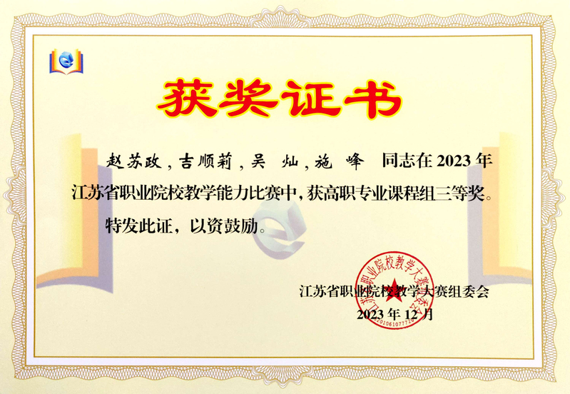 2023年江苏省职业院校教学大赛(高职组比赛)三等奖